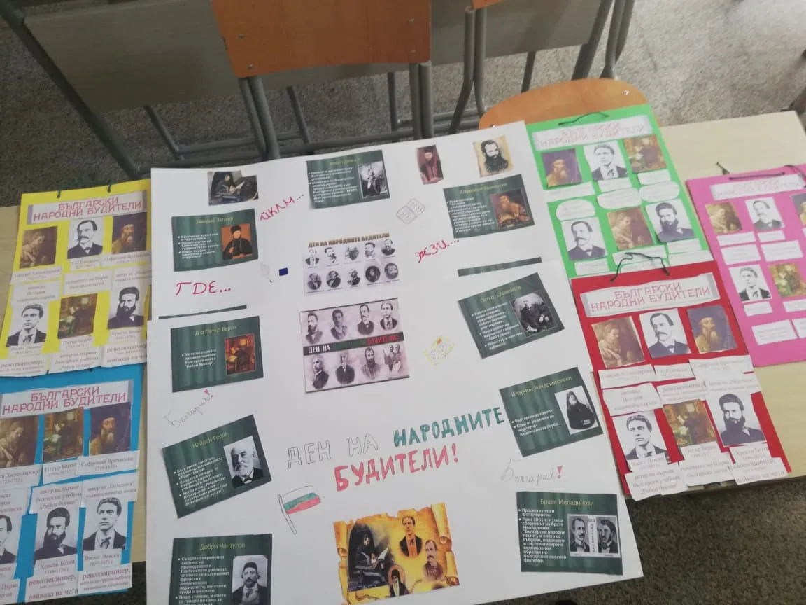 - изложение на колажи от снимки на известни будители от Възраждането, изработени от ученици в 5-ти клас;