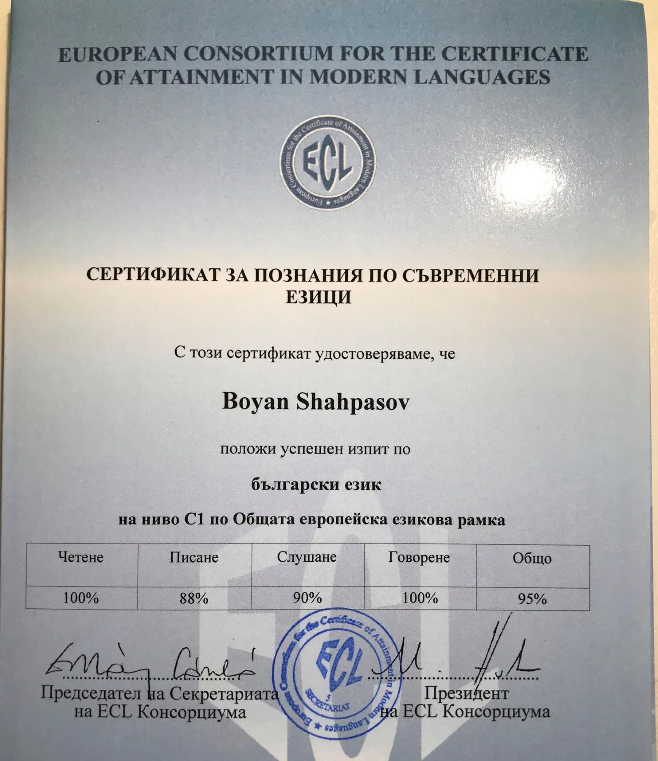 Току-що пристигнаха сертификатите от Европейския консорциум за сертифициране на познанията по български език.